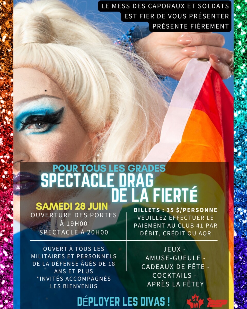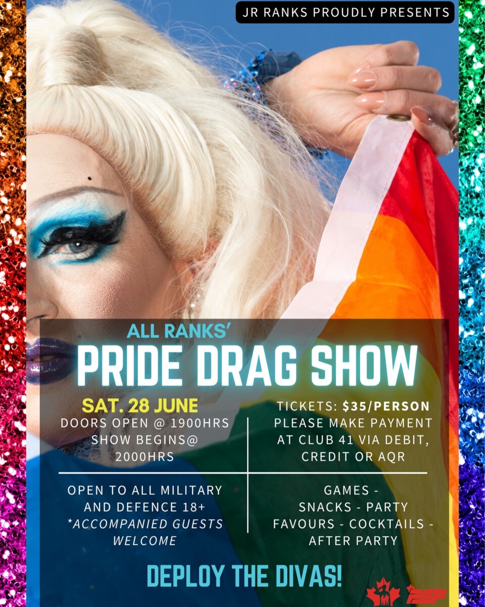 The Jr Ranks’ Mess proudly presents the All Ranks’ PRIDE Drag Show in celebration of Pride Month — and it’s going to be a high-energy, high-glam spectacular you won’t want to miss!