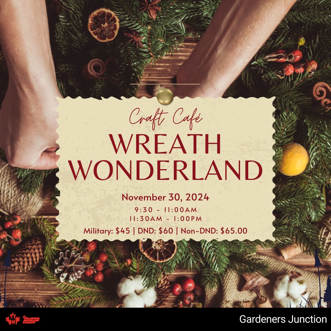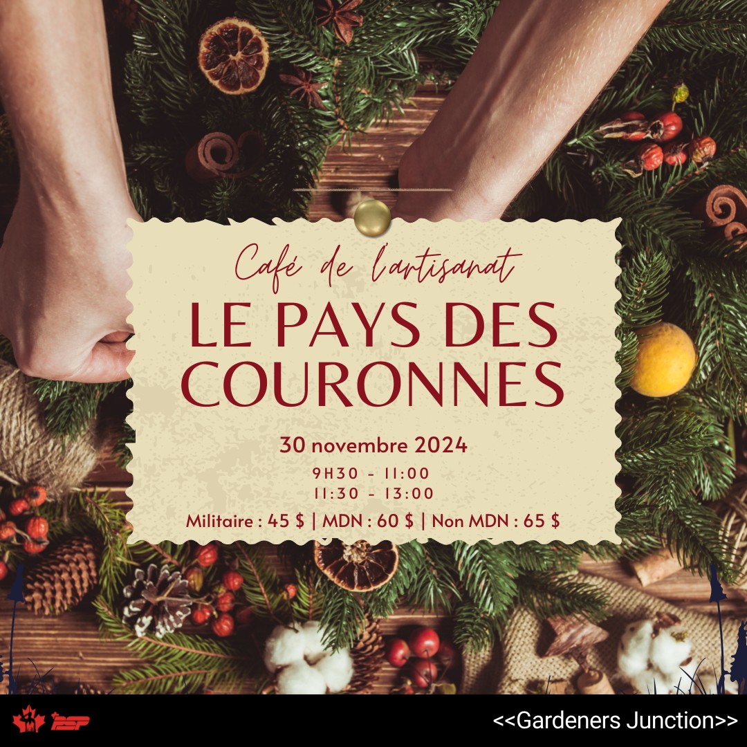 Venez voir la profusion magnifique de couronnes au Gardener’s Junction le 30 novembre! Joignez-vous à nous pour un café artisanat festif et créez votre propre magnifique couronne des Fêtes. Choisissez parmi deux heures : de 9 h 30 à 11 h ou de 11 h 30 à 13 h. Soyons créatifs et faisons de la magie des Fêtes ensemble