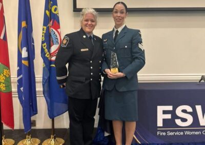 This year was also special for Sergeant Kathleen Jamieson, a proud member of the Canadian Armed Forces fire service since 2014. Jamieson was presented with the 2025 President’s Trailblazer Award for her exceptional contributions to FSWO, to the advancement of the fire service and to inspiring future generations of firefighters.