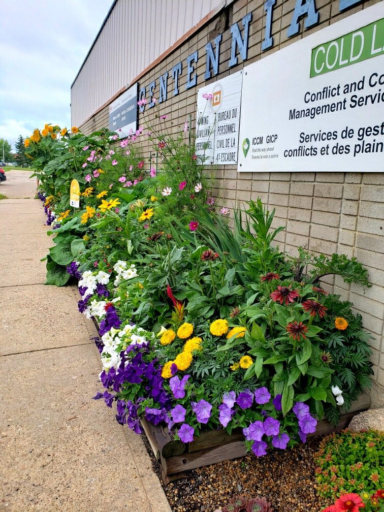 Planting a garden (and gardens around the whole base) is more than just throwing seeds in the ground and hoping for the best. The RP Ops Greenhouse starts the process in the depths of winter by seeding and starting all the flowers in the Greenhouse located on the base. They are nurtured and tended to throughout most of the winter and then when the temperatures are suitable for the flowers to be placed outside. The dynamic duo of the Greenhouse then painstakingly works each flower bed by hand and plant the flowers. In total around all of 4 Wing Cold Lake, the Greenhouse plants and maintains 92 flower beds/pots. This is a large feat in the best of years; however, this year was especially challenging with supply chain disruptions and an event that took the pair away from the growing plants for nearly 2 weeks. As is the RP Ops moto Operandi Successum Agens (enabling operational success) once Glenda and Chelsey returned to the greenhouse, they were able to see to the success of their growing flowers.
