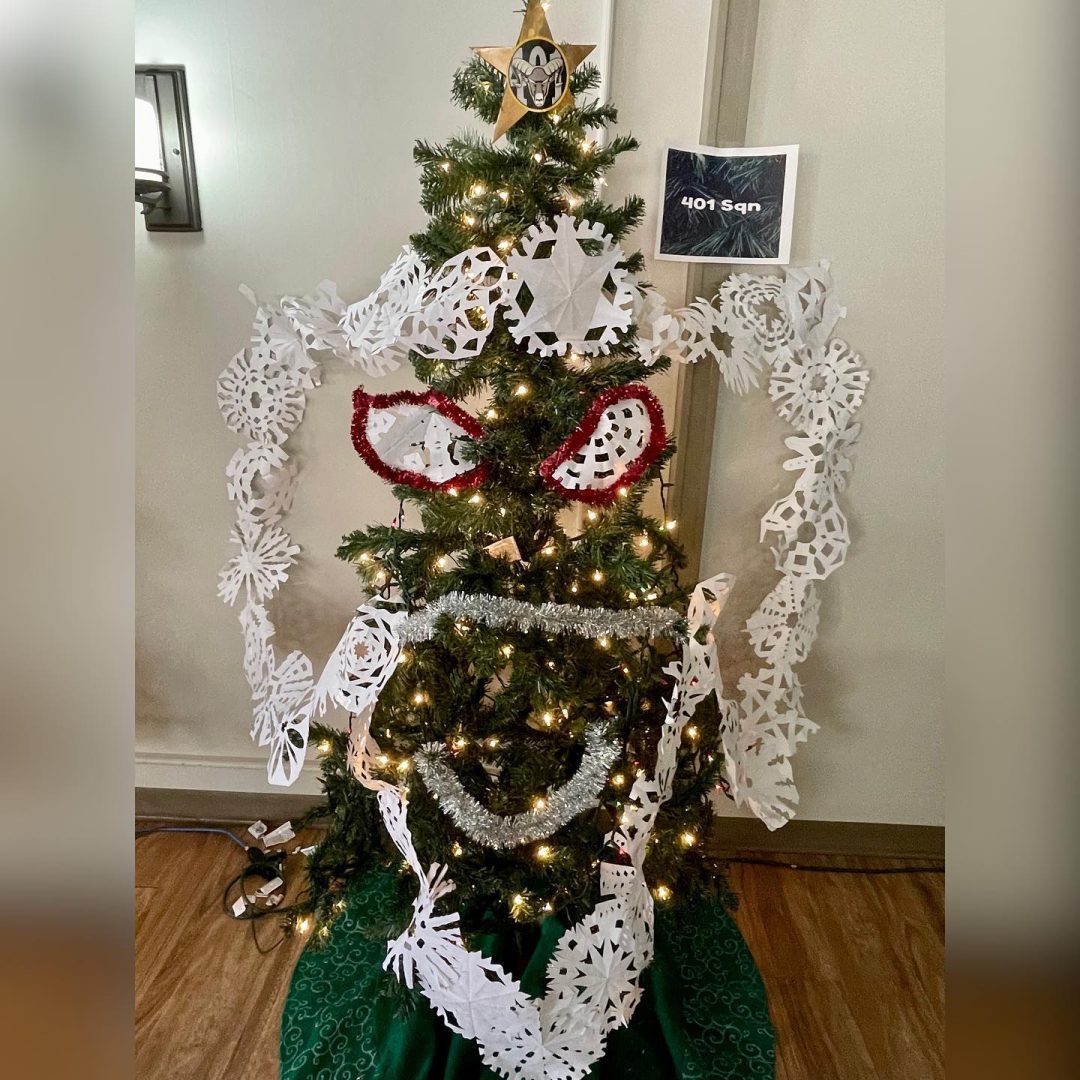 Just before the holiday break, the team announced that 22 Canadian Forces Health Services Centre (22 CFHSC) had won the competition with their tree. Coming in second was the 4 Operational Support Support (4 OSS) tree and in third place was the tree decorated by 401 Tactical Fighter Squadron (401 TFS).