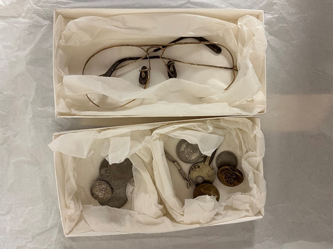 During a major criminal investigation connected to the illicit excavation of Second World War crash sites in the United Kingdom, some of Pilot Officer Brown’s personal effects were recovered by authorities and returned to his family, including his sunglasses, buttons from his uniform, and coins.