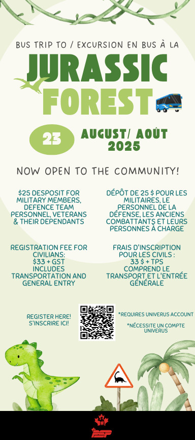 Organized by 4 Wing Personnel Support Programs (PSP) Community Recreation, this exciting one-day trip offers participants a chance to step back in time and explore a forest full of life-sized, animatronic dinosaurs just outside of Edmonton.