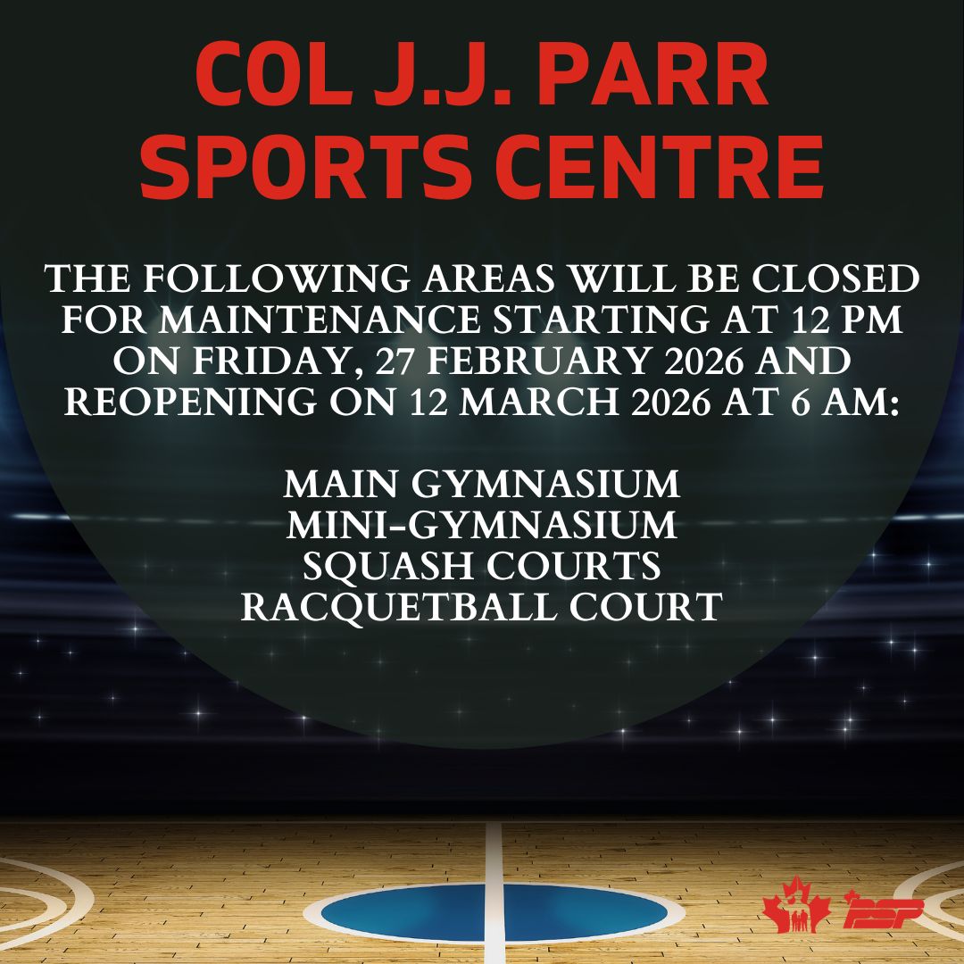 Users of the Col J.J. Parr Sports Centre at Canadian Forces Base (CFB) Cold Lake are being advised of an upcoming temporary closure affecting several athletic spaces within the facility.