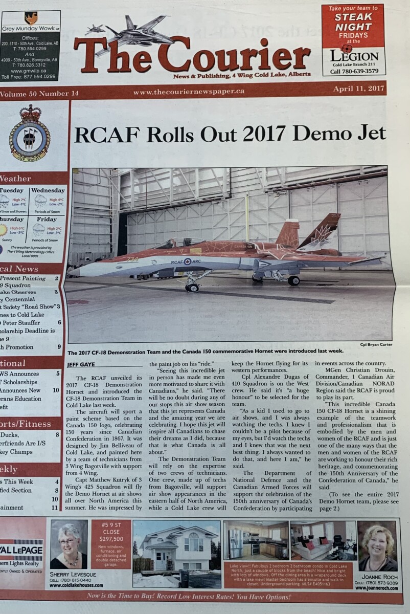 April 11, 2017 – CF-18 demonstration jet unveiled with a special paint scheme to celebrate the 150th anniversary of Canada.