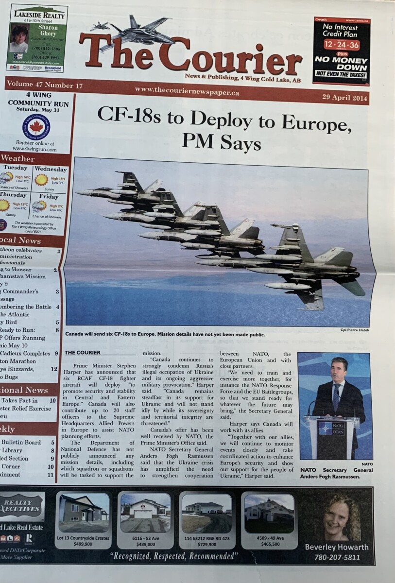 April 29, 2014 – CF-18s to be deployed in Europe following Russian aggression in Ukraine, supporting NATO reassurance missions.