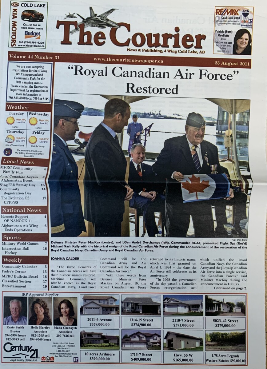August 23, 2011 – Royal Canadian Air Force name restored after years as Air Command, reconnecting Canada’s air force with its historic identity.