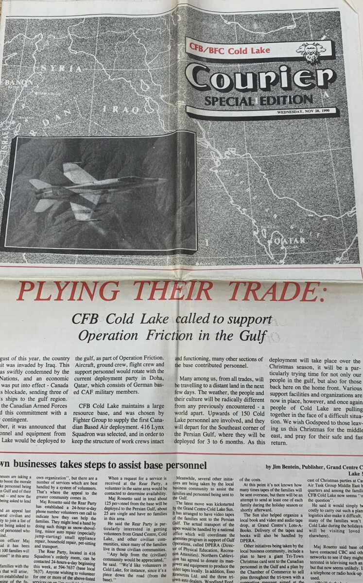 November 28, 1990 – Units from CFB Cold Lake prepare to deploy as part of Operation Friction in the Gulf War. Canadian CF-18s will fly combat missions overseas for the first time in decades.