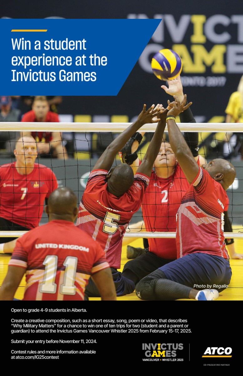ATCO is inviting Alberta students in grades 4 through 9 to enter a creative composition on WHY MILITARY MATTERS for a chance to win one of 10 trips for two (student and parent/legal guardian) to attend the Invictus Games in Vancouver from February 15-17, 2025.