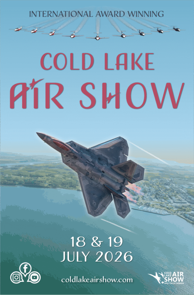 L’affiche officielle du spectacle aérien de Cold Lake 2026 a été dévoilée, donnant au public un premier aperçu de ce qui l’attend dans le ciel de Cold Lake dans le cadre du retour de l’événement, cet été.