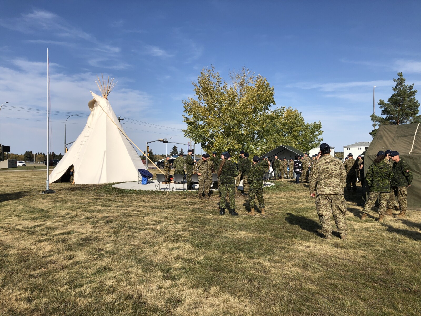 La Base des Forces canadiennes (BFC) Cold Lake a célébré la Journée nationale de la vérité et de la réconciliation le lundi 29 septembre en organisant une activité d’échanges sur la culture autochtone dans l’espace de rassemblement situé entre le Centre sportif Col J.J. Parr et l’Économat (CANEX).
