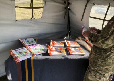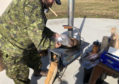 Le programme de l’activité comprenait des échanges culturels portant sur la nourriture et les traditions autochtones. Le sergent Dana Janvier et sa mère Marlene ont servi du chili et du pain bannock aux participants, tandis que l’adjudant John McArthur leur a préparé du filet d’orignal et du thé de Chaga.