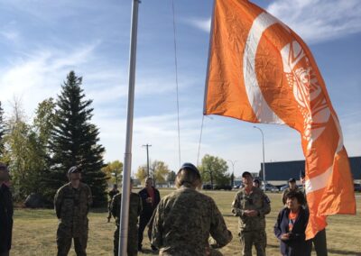 Dans le cadre des cérémonies, le sergent Janvier et l’adjudant McArthur ont hissé le drapeau des survivants des pensionnats, un geste important de respect et de commémoration.