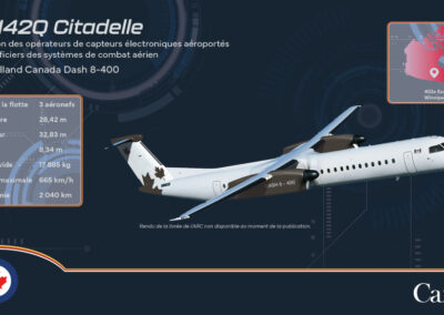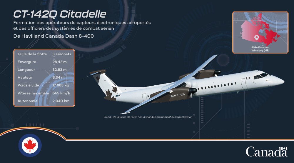 Le Dash 8-400 Citadel formera les officiers des systèmes de combat aérien et les opérateurs de détecteurs électroniques aéroportés. Ce nom est un hommage aux forteresses défensives dans l’histoire du Canada, la Citadelle de Québec et la Citadelle d’Halifax. Trois avions Citadel seront basés à la 17e Escadre Winnipeg.