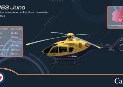 Les futurs pilotes d’hélicoptères apprendront leurs compétences sur l’Airbus H135, désormais désigné sous le nom de CT-153 Juno. Le nom commémore Juno Beach, la zone de débarquement des Canadiens le jour J en 1944. Ces hélicoptères seront basés à Southport, au Manitoba. - CT-142Q Citadel
