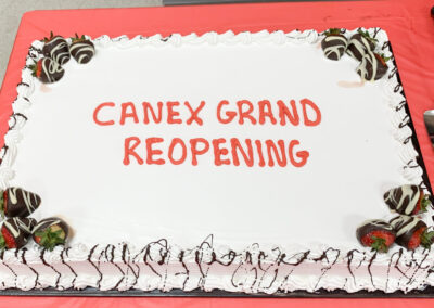 Le commandant de la 4e Escadre et de la BFC Cold Lake, le colonel Mark Hickey, ainsi que l’adjudant-chef de l’escadre Carlos Oliveira, se sont joints à la gérante du CANEX, Sheri Klein, et à d’autres responsables pour couper le ruban et accueillir de nouveau les clients. Les invités ont pu déguster du gâteau, écouter de la musique en direct interprétée par la fanfare de la 4e Escadre et découvrir en primeur le nouveau concept et la sélection élargie.