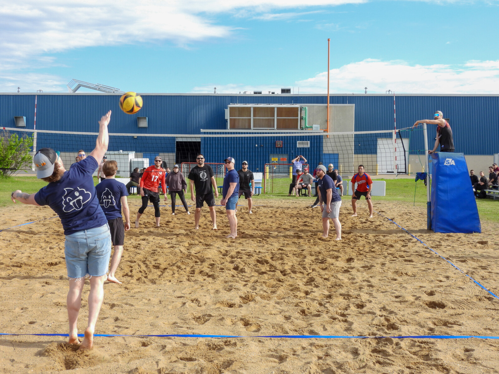 Des participants s’affrontent lors d’un match animé de volleyball de plage pendant la Journée  du sport de 4e Escadre 2024 à la Base des Forces canadiennes Cold Lake. La planification est déjà en cours pour l’édition 2025, qui promet encore plus d’activités dynamiques et d’esprit d’équipe – Photo d’archives.