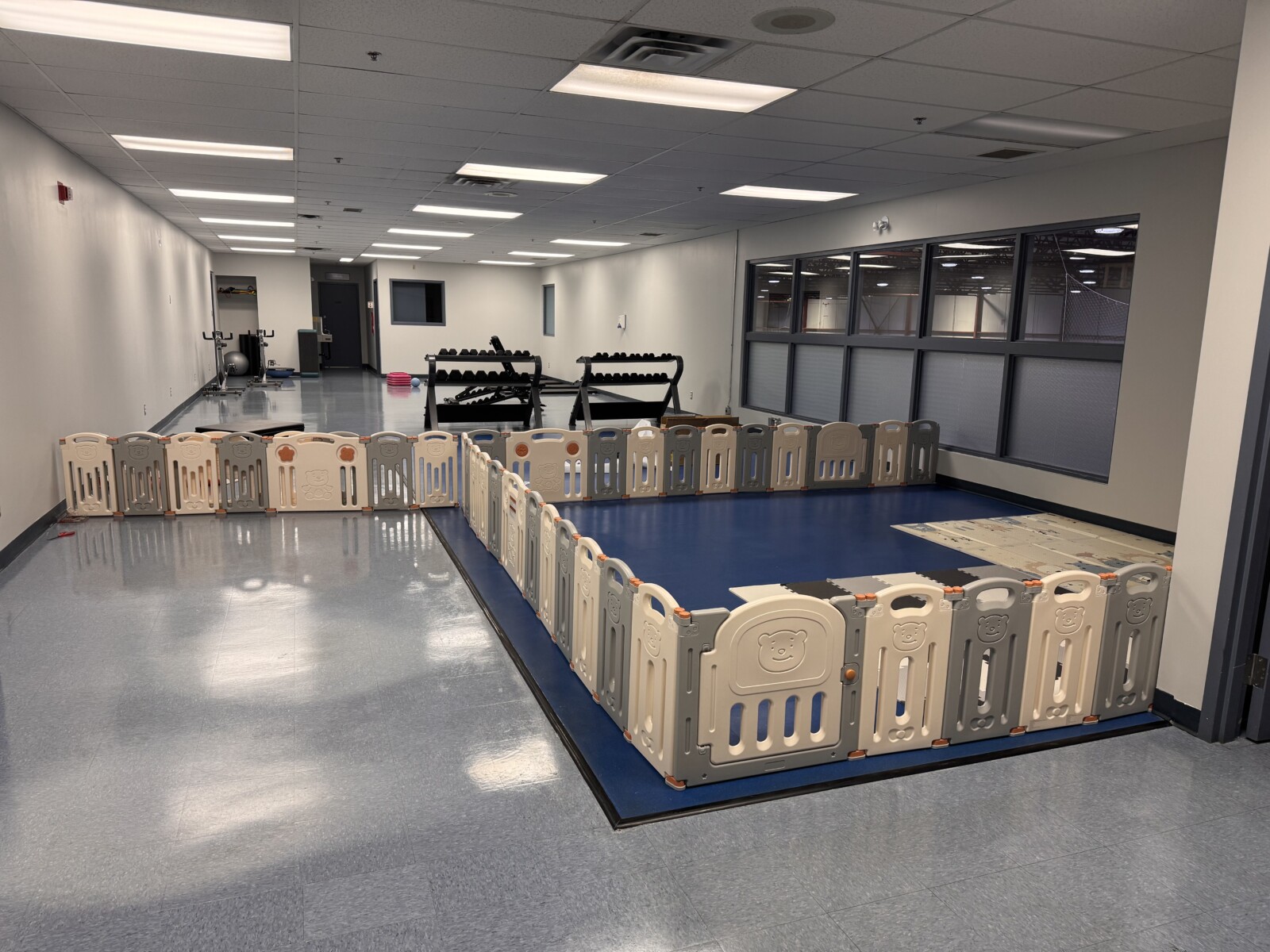 • Espace de jeux pour enfants – Un espace sûr et attrayant où les enfants peuvent jouer et s’amuser pendant que les parents font de l’exercice.