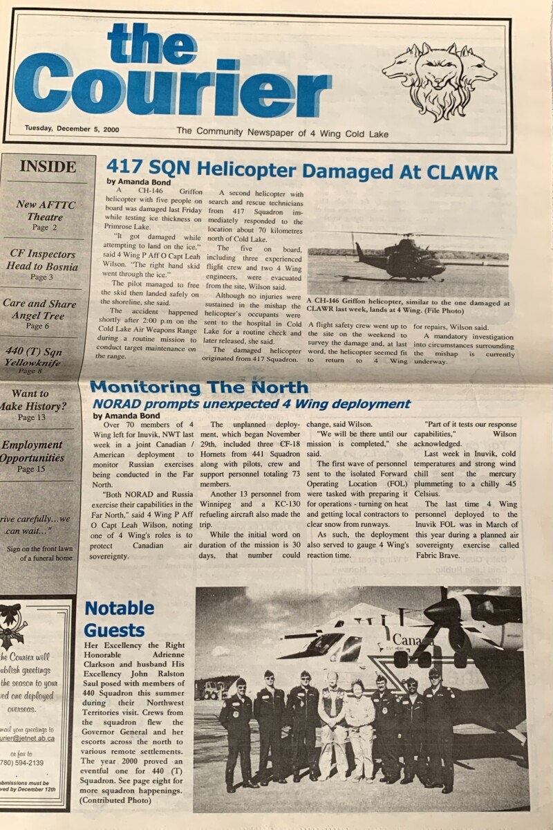 5 décembre 2000 – Les membres de la 4e Escadre et de la BFC Cold Lake partent en mission dans le cadre de l’opération NORTHERN DENIAL, qui consiste à surveiller les exercices des bombardiers russes près de l’Amérique du Nord et à démontrer la vigilance continue du Canada.